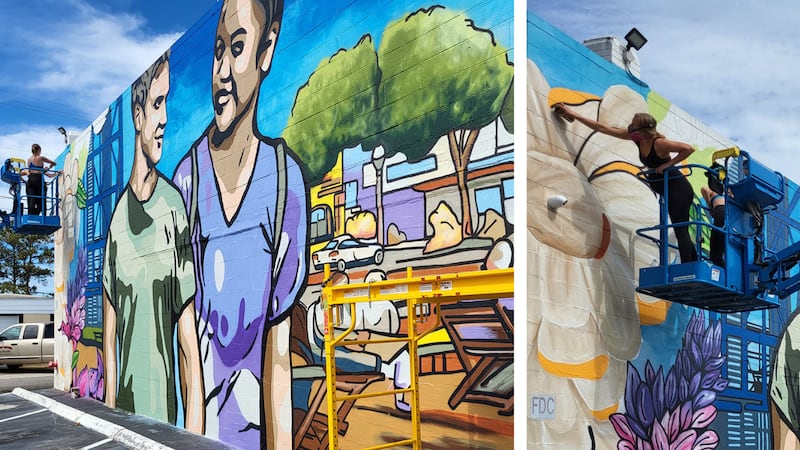 The mural was created by Allison Dunavan and Christiane Crawford, a pair of Coastal Carolina University graduates who founded the company Girls Who Paint Murals.